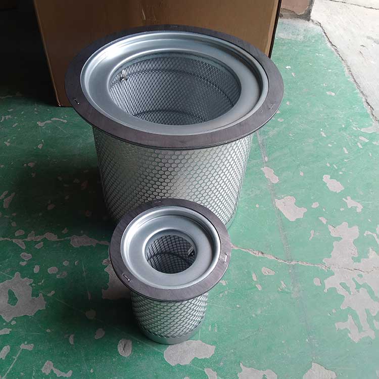 油氣分離元件是決定空壓機壓縮空氣品質的關鍵部件,高質量的油氣分離元件不僅可保證壓縮機的高效率工作,且濾芯壽命可達數千小時。從壓縮機頭出來的壓縮空氣夾帶大大小小的油滴,大油滴通過油氣分離罐時易分離,而小油滴(直徑1μm以下懸浮油微粒)則必須通過油氣分離濾芯的微米級玻纖濾料層過濾。油微粒經過濾材的擴散作用,直接被濾材攔截以及慣性碰撞凝聚等機理使壓縮空氣中的懸浮油微粒很快凝聚成大油滴,在重力作用下油凝聚在油分芯底部,通過底部凹處回油管進口返回機頭潤滑油系統,從而使壓縮機排出更加純凈無油的壓縮空氣。壓縮空氣中的固體粒子經過油分芯時滯留在過濾層中,這就導致了油分芯壓差(阻力)不斷增加。隨著油分芯使用時間增長,當油分芯壓差達到0.08到0.1Mpa時,或者壓縮空氣出口產生明顯的含油量時,濾芯必須更換,否則增加壓縮機運行成本(耗電或耗油)。