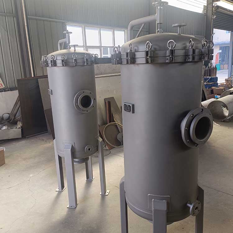 大都采用不銹鋼做外殼,內部裝過濾濾芯(例如PP棉等),主要用在多介質預處理過濾之后,反滲透、超濾等膜過濾設備之前。用來濾除經多介質過濾后的細小物質(例如微小的石英沙,活性炭顆粒等),以確保水質過濾精度及保護膜過濾元件不受大顆粒物質的損壞。精密過濾裝置內裝的過濾濾芯精度等級可分為0.5μs,1μs,5μs,10μs等,根據不同的使用場合選用不同的過濾精度,以保證后出水精度及保證后級膜元件的安全。